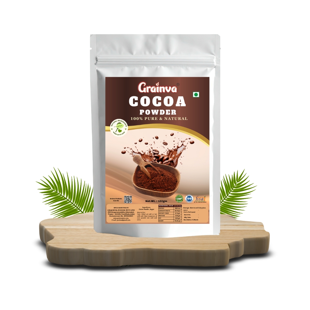 Original price was: ₹398.00.₹298.00Current price is: ₹298.00.Grainva Pure Cocoa Powder | Baking, Cakes, Cookies, Milkshake, Hot Chocolat – 150g
